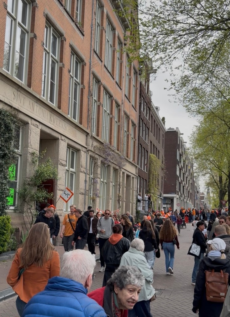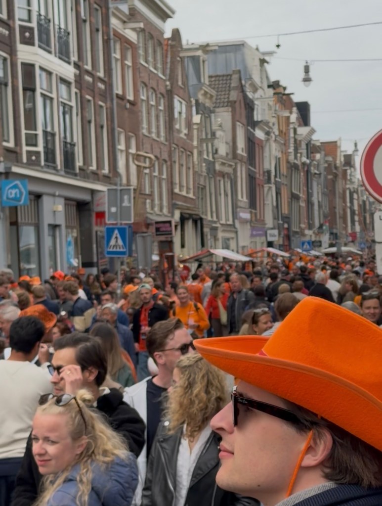April 27 is the day we transfer from the hotel to the ship, but we had some time in the morning before we go, so we decide to put on our orange shirts and go in search of King’s Day festivities.