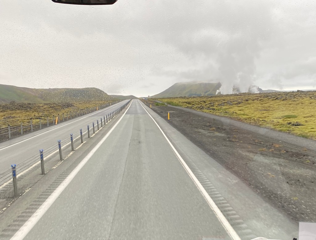 Before too long, we could see the steam of the Blue Lagoon in the distance. Apparently the name “Reykjavik” comes from “smoky harbor”, because the Vikings saw the steam from assorted geothermal sites.