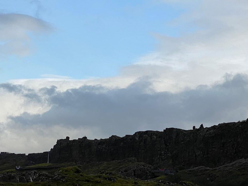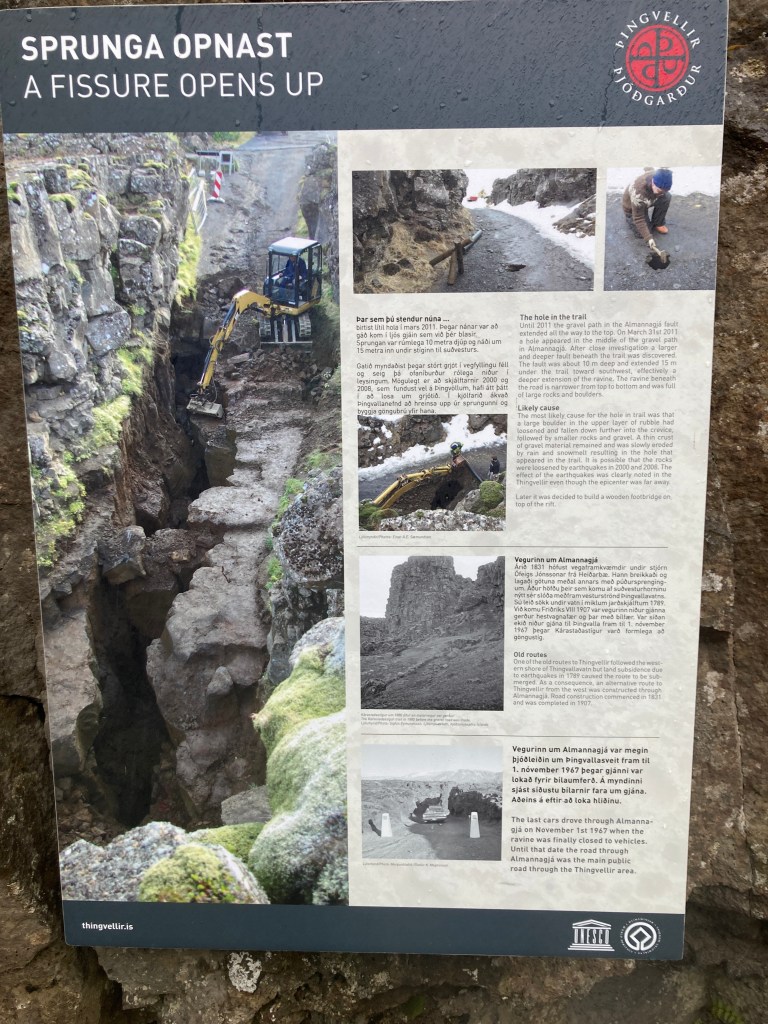 A bit of a drive to our first stop – the spot where the North American plate and the European plate meet and are in the process of separating, one of the many reasons Iceland is a hot spot for geothermal activity.