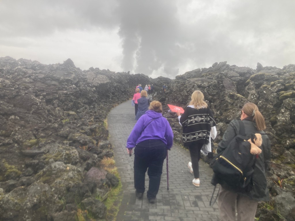 That’s me in the purple hoodie, with Lena on my right. The path to the spa had been hewn out of the lava around the what would become the spa.