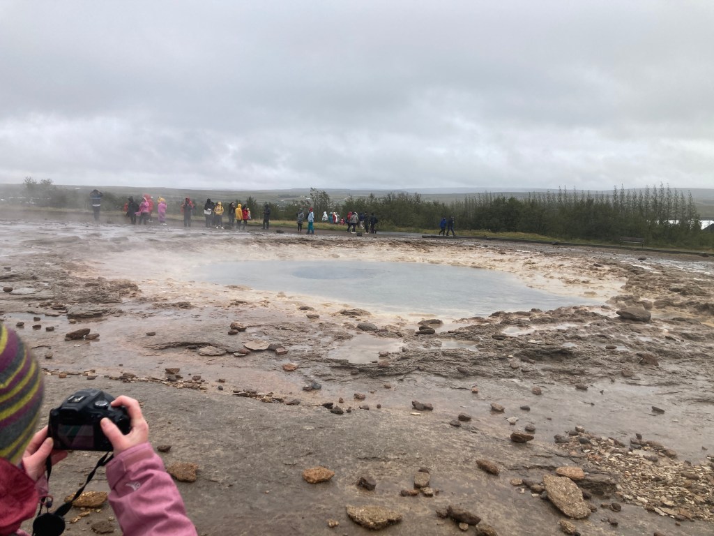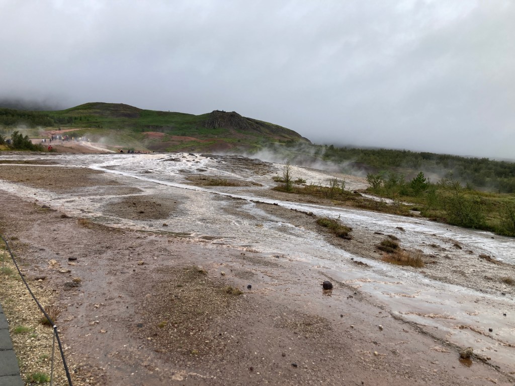 Our next stop was at a geyser park. One of the geysers spurts about every 10 minutes, give or take, billowing out a sulfurous cloud.