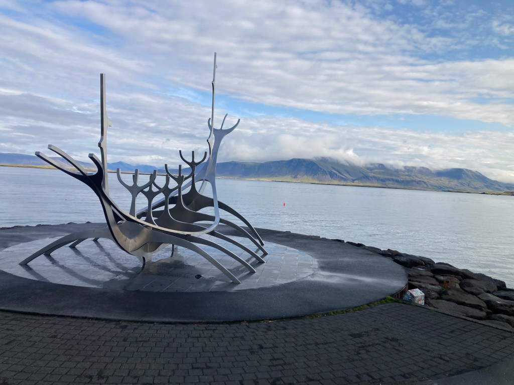 One last photo stop on the way back to the hotel – the Sun Voyager sculpture, with the mountains in the background showing off the otherworldly scenery that is Iceland: